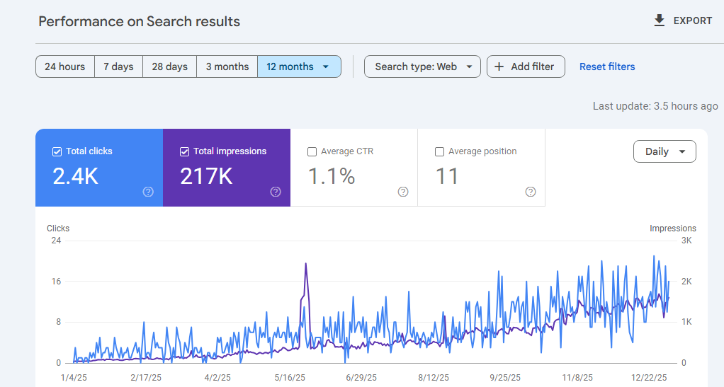 Website Joyo Mebel dibangun secara SEO friendly dan kemudian dioptimasi menggunakan strategi white hat SEO. Strategi ini cukup manjur karena jika dilihat dari peningkatan trafik dari waktu ke waktu terlihat mengalami kenaikan signifikan. Disinilah peran tim yang berpengalaman diuji.